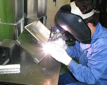 上下の電極を通して大電圧をかける事により金属同士を接合させる事ができます。 スポットする物がずれない様にゲージや合わせを利用します。